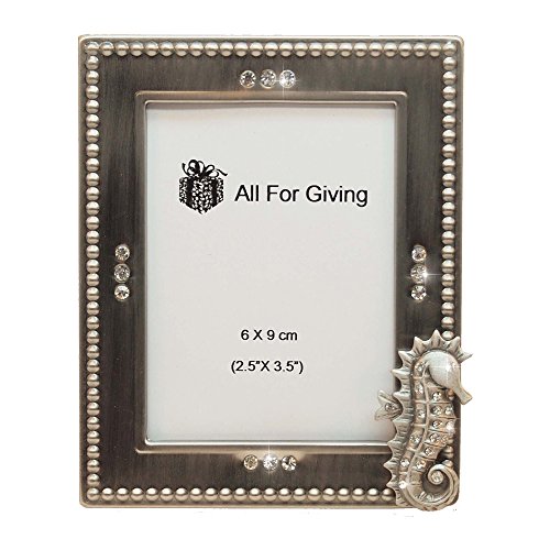 Studio : All For Giving Publisher : All For Giving Binding : Misc. Product Description Proudly display your favorite photo of a special someone or a cherished moment with this coastal themed small frame. This 2.5" X 3.5" frame features a seahorse and is accented with brilliant clear crystals. 0