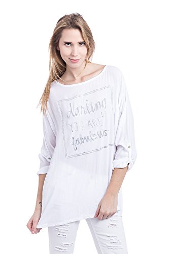-. Title : Abbino 89612 Damen Shirts Tops - Made in Italy - Frühjahr Sommer Basics Tshirts T Damenshirts Damentops 3/4 Arm Taillenlang Rundhals Buchstaben Sale Feminin Lässig Sexy Spitze Festlich - 2 Farben