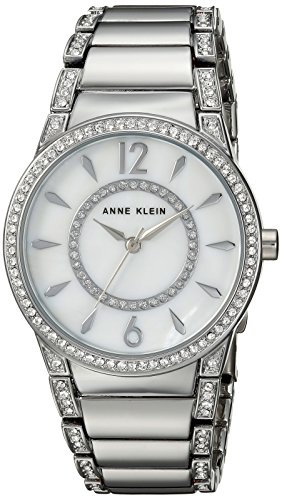 Studio : Anne Klein Publisher : Anne Klein Binding : Watch Product Description A wardrobe staple that can be worn from day to night. The silvertone bracelet is functional for the office and shimmers with genuine Swarovski crystals for a dazzling nightime look. The dial is kept classic with a mother of pearl background and silvertone hands and markers. The bracelet is self adjustable with extra links and closes with a jewelry clasp. 0