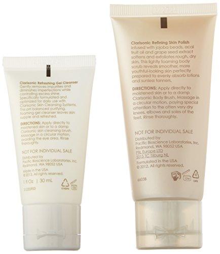 • System includes Smart Profile device, 2-in-1 dynamic brush head, Turbo massage brush head, trial size refining skin polish 2 ounce, refreshing gel cleanser 1oz, charger and stand