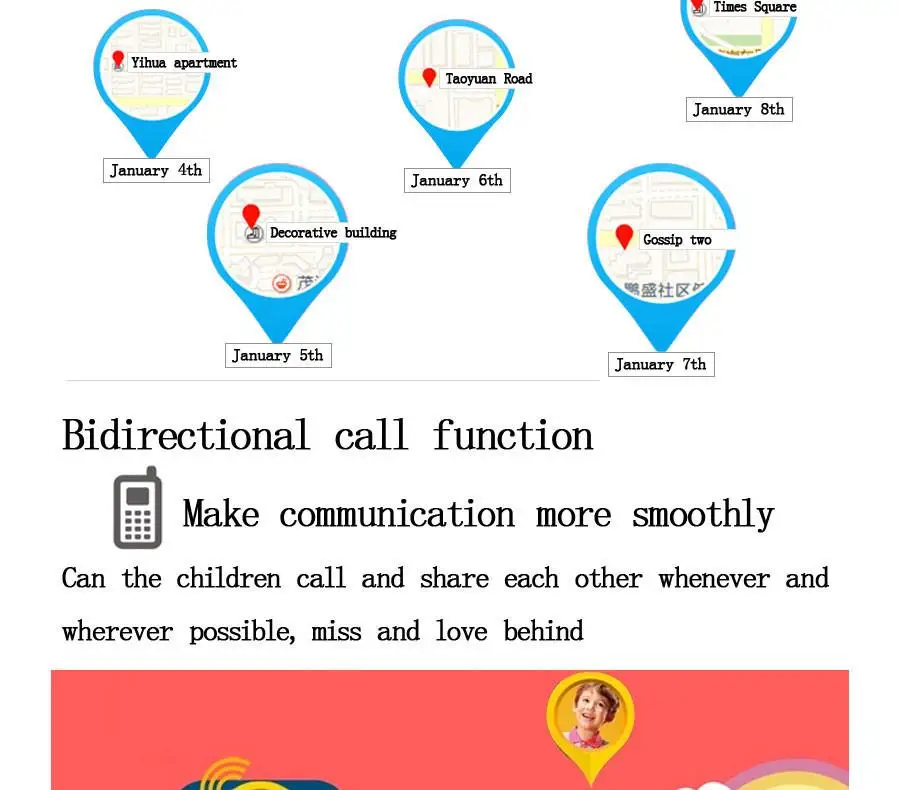 Feature:Water Resistant,LED display,Sleep Tracker,Message Reminder,Back Light,GPS,Safety Warning,Call Reminder,Auto Date,Dial Call,Answer Call,Alarm