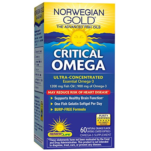 ReleaseDate : 2015-06-22 Studio : Norwegian Gold Publisher : Norwegian Gold Binding : Health and Beauty Product Description Norwegian Gold Critical Omega is an ultra-concentrated EPA and DHA Omega-3 fish oil supplement to support heart, joint, and brain health. Ultra-concentrated to over 85% total Omegas, it has 900 mg Omega-3 in each burp-free softgel to help give your body what it might be missing. These statements have not been evaluated by the Food and Drug Administration. This product is not intended to diagnose, treat, cure, or prevent any disease. * These statements have not been evaluated by the Food and Drug Administration. This product is not intended to diagnose, treat, cure, or prevent any disease. 0