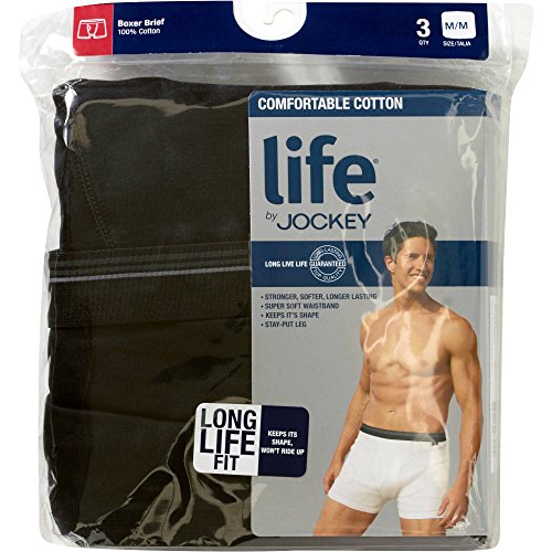 -. Title : Life by Jockey Men's 3-Pack 100% Cotton Black / Dark Boxer Briefs