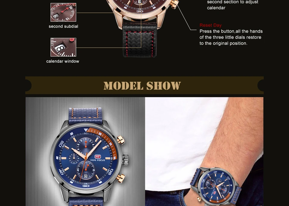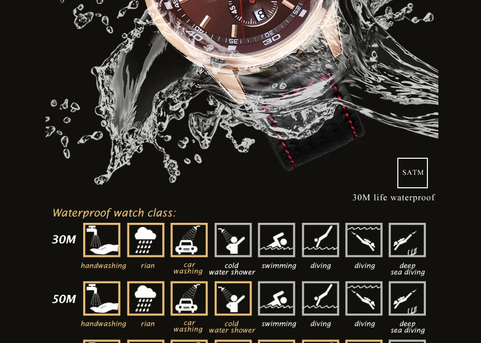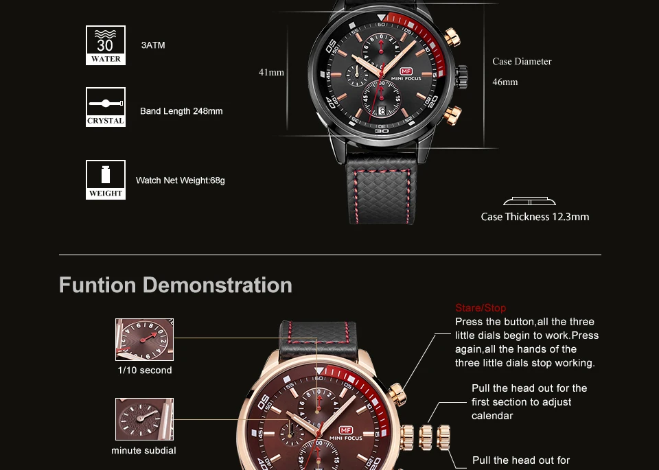Feature:Water Resistant,Auto Date,Shock Resistant,Chronograph