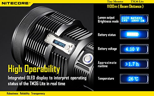 NiteCore TM36 Lite Luminus SBT-70 LED Rechargeable Flashlight, Black