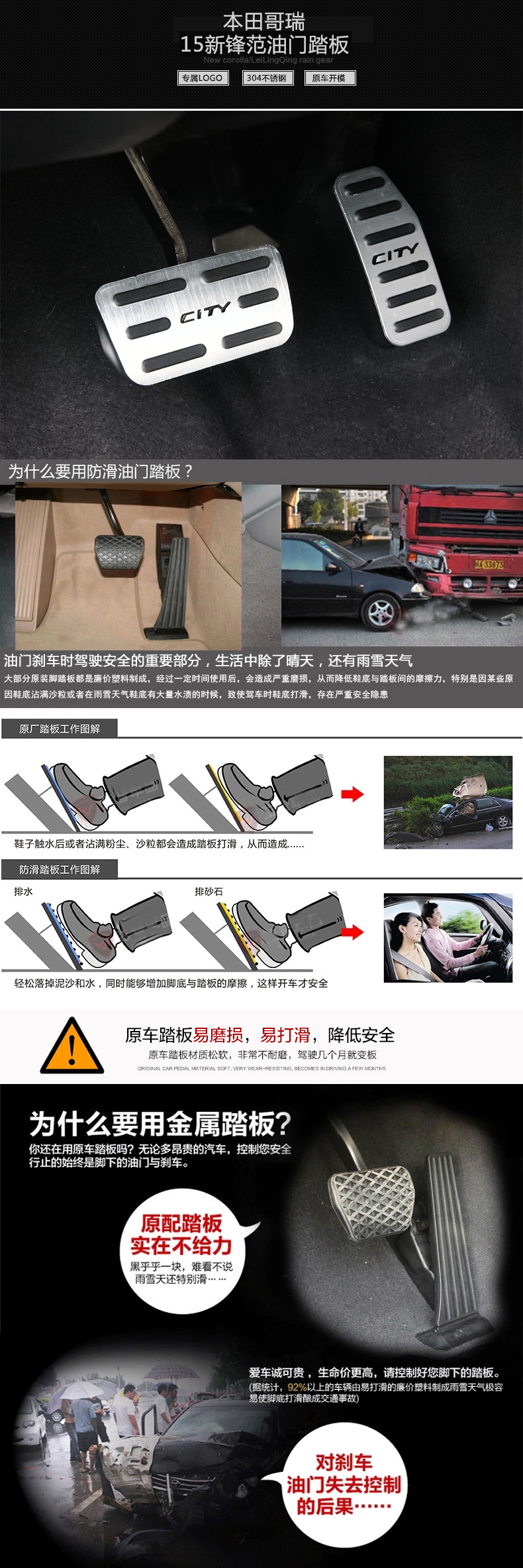15新锋范改装油门踏板 304不锈钢材质免打孔离合刹车哥瑞油门踏板
