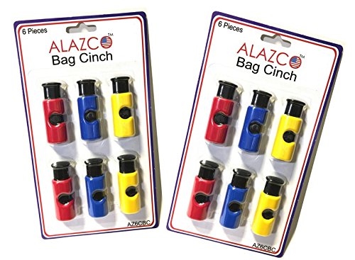 12pc Premium Quality ALAZCO Bag Clips - Value Set Food Fruit Bread Bag Cinch Non-Slip Grip EASY Squeeze & Lock