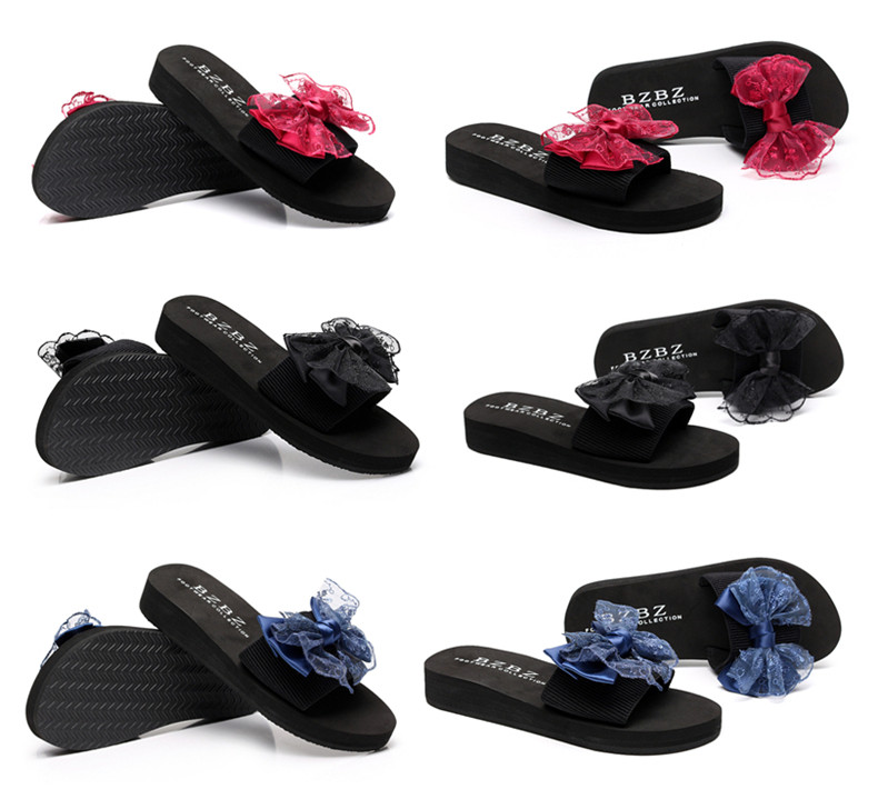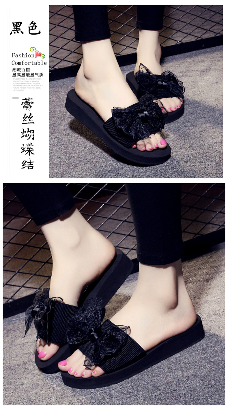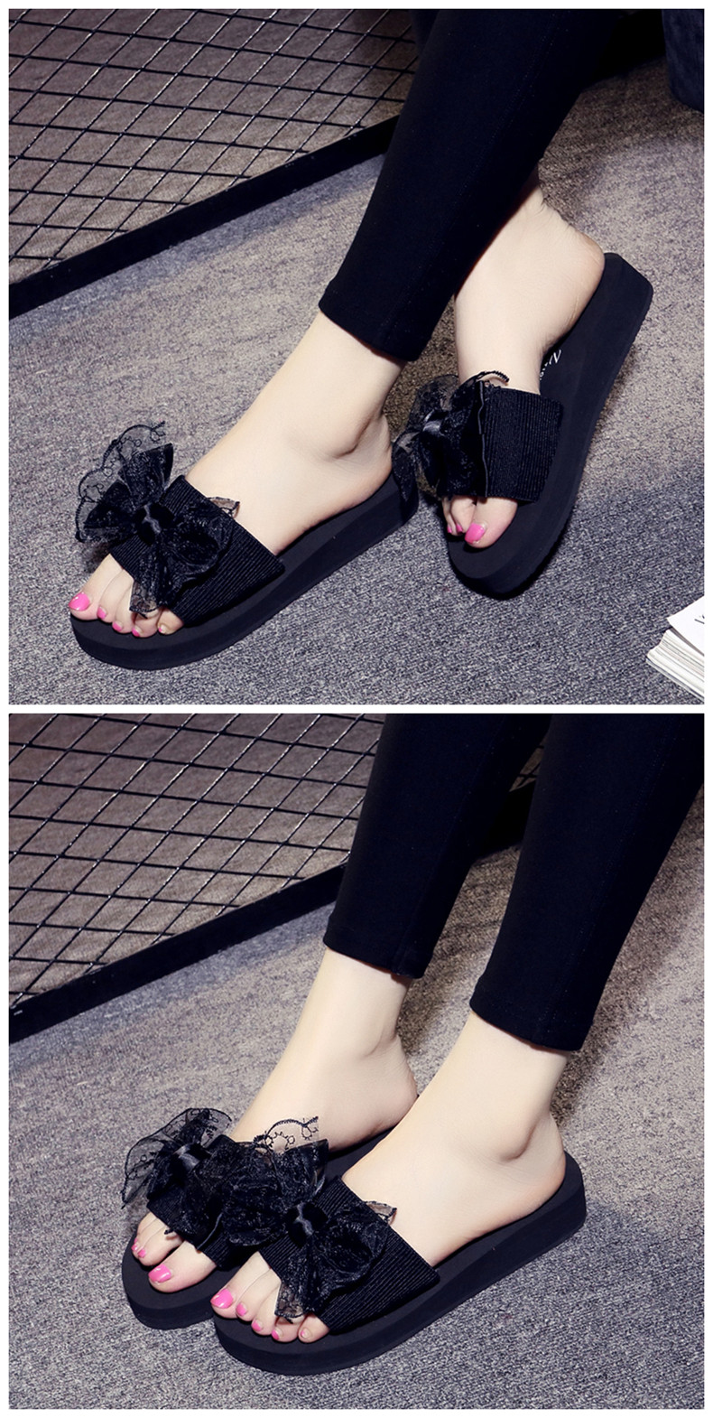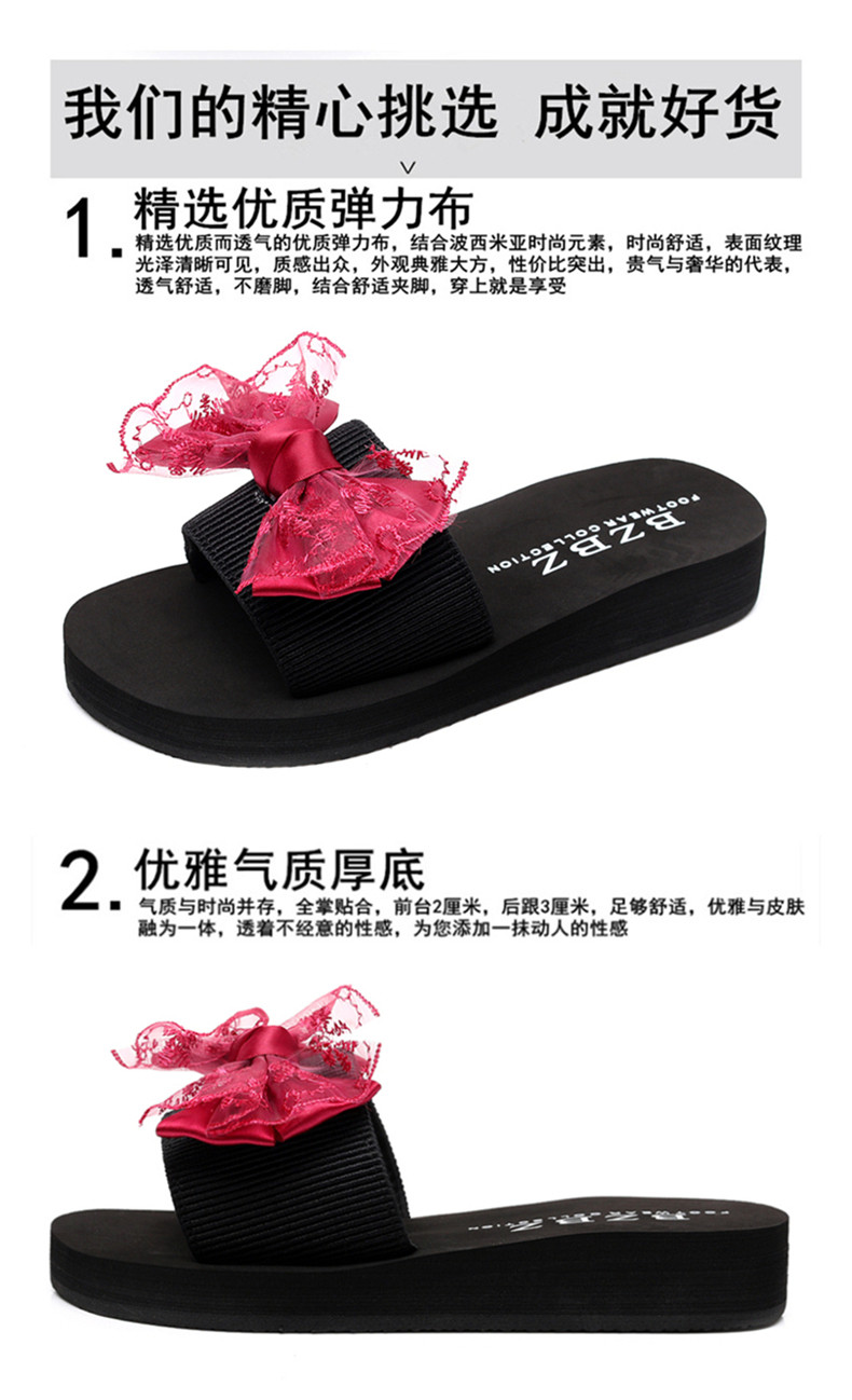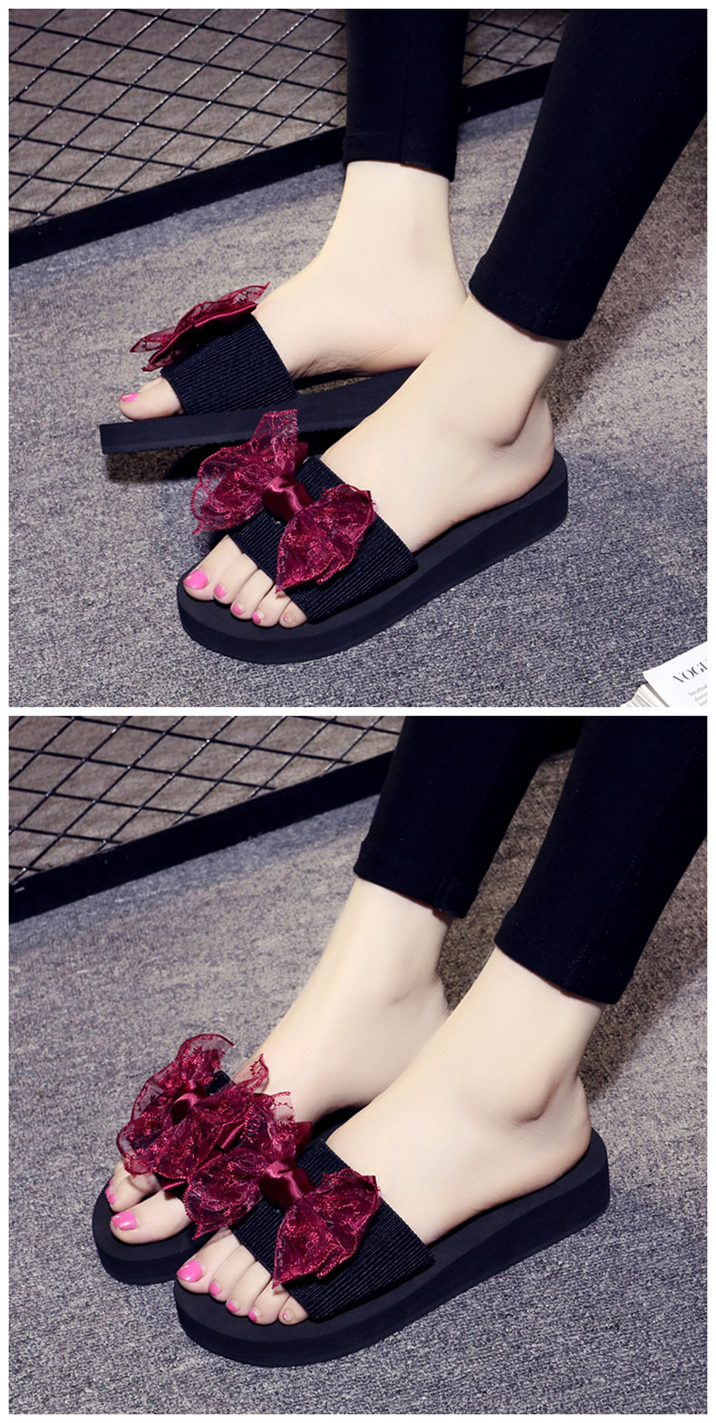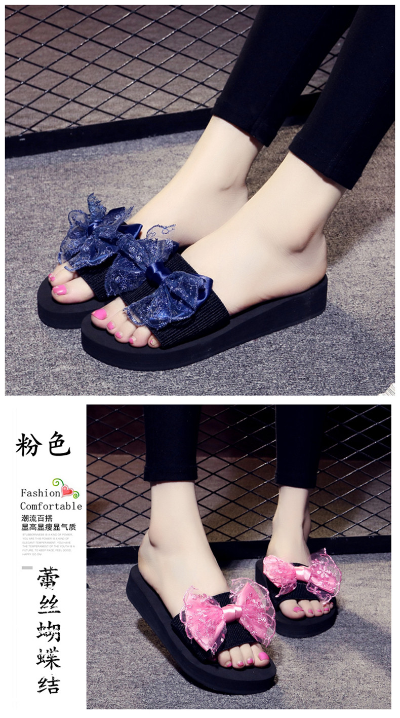 韩版百搭外穿厚底凉拖鞋女夏时尚手工蝴蝶结平底一字拖防滑沙滩鞋