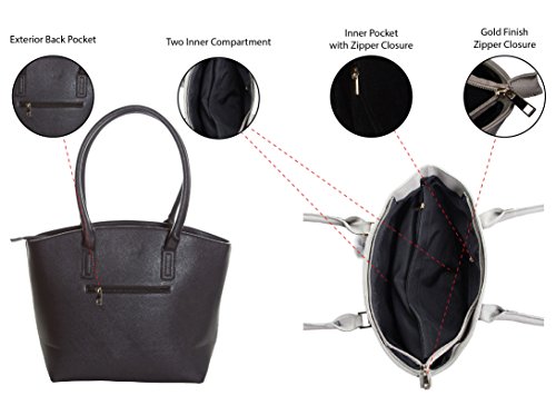 -. Title : Large Tote Bag for Women Made From Faux Leather with Top Zipper Closure