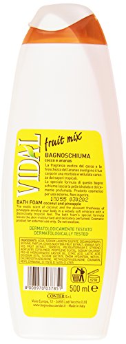 Vidal: "Fruit Mix" Bath Foam with Coconut and Pineapple * 16.9 Fluid Ounces (500ml) Package * [ Italian Import ]