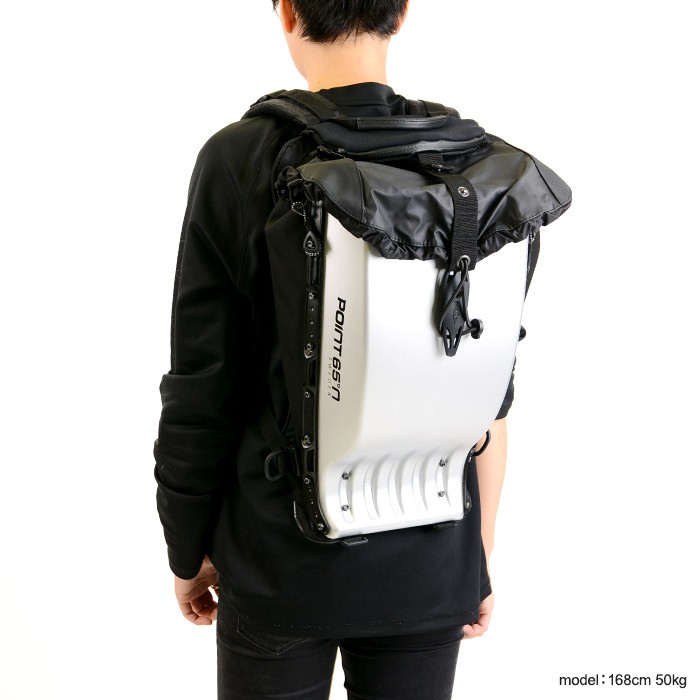 | 商品詳細 | Point 65 ポイント65 1994年にスウェーデンで誕生した唯一無二な独自の世界観を持つバッグブランド、BOBLBEE (Boblbe-e ボブルビー)。その技術やクオリティ、インパクトのあるデザインはそのままに、新たにPoint 65としてリリースされました。ボブルビーの今までのバッグにない斬新なデザインとそのマインドは一躍世界に広がり、その名が知られるように。人間工学に基づいた負荷分布構造で、持ちやすさと耐久性、デザイン性を兼ね備えたバッグを作り続けています。 Boblbee GT 20L/旧 PEOPLE DELITE EXECUTIVE ボブルビーの「25L (旧メガロポリス)」同様、ブランドの世界観を十二分に表現したスタンダードシリーズ「BOBLBEE 20L(旧ピープルズ・デライト)」。「ボブルビー 25L」の特徴を活かし、小型に軽量化されたコンパクトモデルです。ABS樹脂製モノコックハードシェルと、ソフトなハーネス部分からなり、堅牢さとフィット感を兼ね備えたバッグになっています。見た目もとてもハードな仕上がりですが、ABS樹脂製モノコックハードシェルは収納物を外部からの衝撃から護るとても頼もしい存在です。また、モノコックハードシェル構造ならではの「S字型デザイン」により、バッグを背負った時に背中にかかる負荷を上部と下部に分散しストレスを軽減する仕組みになっています。さらに嬉しい機能も。「BOBLBEE 25L」を背負うこと自体が、オートバイ等の運転中やスキーでの滑走中、万一の事故にあった際に背中を保護する機能を持っており、ヨーロッパの安全規格であるEN 1621-2 (LEVEL 2)の認証を受けています。※レベル2はEN 1621-2の最高レベルです。 収納荷物のサイズに合わせて容量の拡張も可能な設計になっており、大変魅力的なポイントです。 | ||