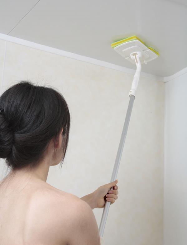| 浴室の天井・壁面・浴槽・床など腰を曲げずに楽な姿勢で洗うことができます。水切れの良いスポンジクリーナー使用。収納に便利な3段折りたたみパイプ使用。柄を外せばハンドタイプとしても使用できます。 |