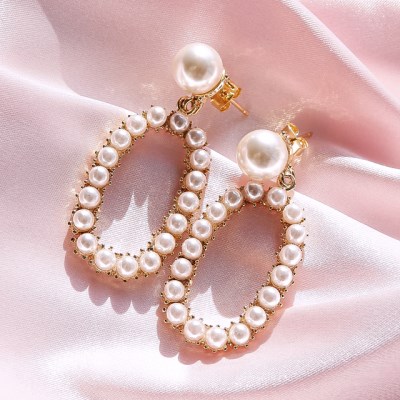 요즘핫한 타원라인의 진주 드롭 귀걸이에요!고급스러운 영롱한 빛이 감도는 진주를 사용하여 더욱 아름다워요~여성스러운 코디에 착용하면 더욱화사하며, 심플한 스타일링에 착용하면 귀걸이 하나로 전체적인스타일이 돋보인답니다~타원의 형태라 얼굴라인이 더욱 갸름해보이는 효과가 나타난답니다.무알러지 무니켈침을 사용하여 알러지 걱정없이 아름답게 착용하실수 있답니다.