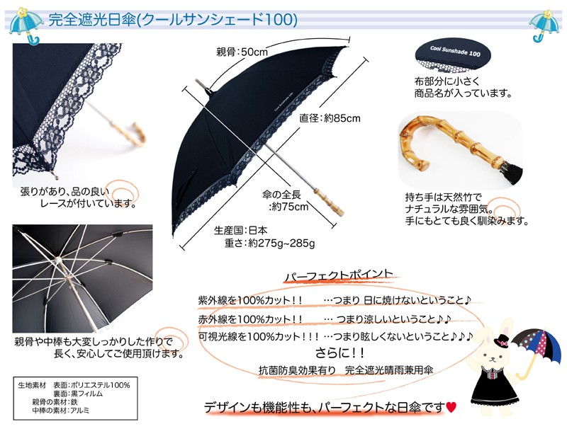 日傘(ひがさ)紫外線・赤外線・可視光線を100%カット!!
