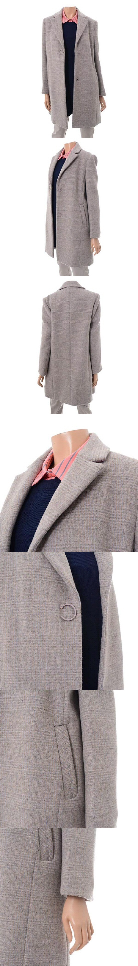 -은은한 체크 패턴이 고급스러운 울 혼방 소재로 카라 밑단 배색과 앞 장식 단추로 포인트를 준