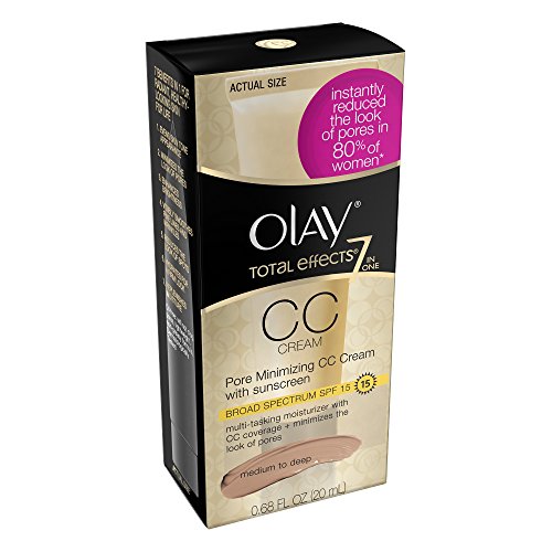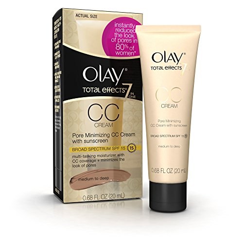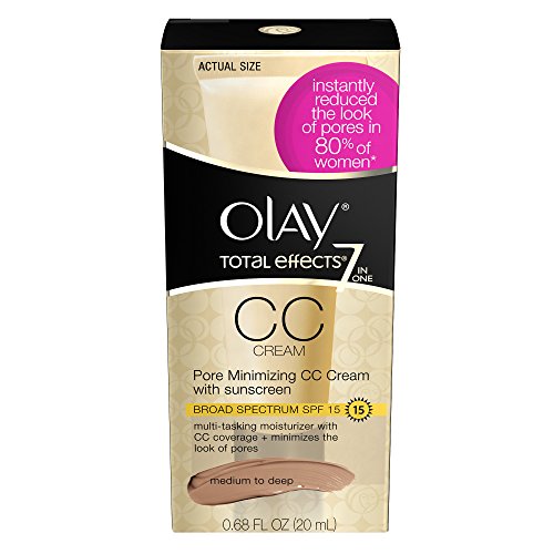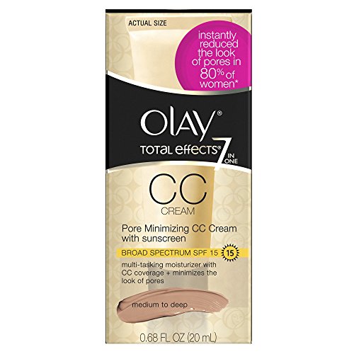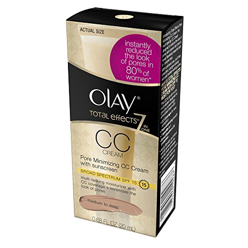 Color and correct moisturize apply SPF and reduce the appearance of your pores all in one step. The only thing that can out multi- task Olay total effects pore minimizing CC cream medium to deep is you. The new Olay total effects pore minimizing CC cream medium to deep instantly reduced the look of pores in 80 percent of women as assessed by expert graders. Formulated with 7 benefits in 1 product for younger-looking skin you can reduce the appearance of pores and maintain healthy younger-looking skin for a beautiful flawless finish. This multi-tasking moisturizer is also oil-free lightweight and wont clog your pores. With continued use you'll see smoother younger-looking skin and smaller looking pores. Reduce the appearance of pores and flaunt a flawless airbrushed finish every day with the new Olay total effects pore minimizing CC cream medium to deep.Feature