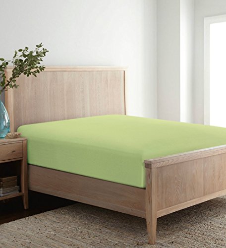 FT Home Fashion Solid Green 100% Cotton Queen Size Fitted Sheet, 15 Inches Deep Pocket