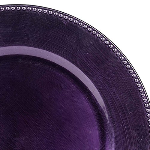 Product Description Black Leaf Beaded Edge Charger Plates 13 inches diameter. Solid acrylic base with beaded edging to enhance the appearance of your reception table. Easy to clean, wipe with damp cloth or sponge. Great use with fine china, and protects the linens from the plates bowls. **Charger plates cannot be used as dinner plate themselves. **Inner ring measures 9"; diameter. **Sold in sets of 24 plates. If any chargers are damaged in transit, replacements can only be sent via UPS Ground or Refunded, solely at our discretion. Note: Chargers are manufactured to have circular groove design throughout. This is normal, and is not a defect. 0