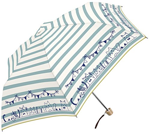 -. Title : ミクニ ボーダー アンド キャット 全2色 折りたたみ傘 手開き ミント ブルー 6本骨 55cm 軽量 グラスファイバー骨 耐風 MK486900