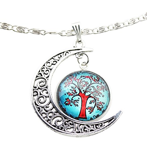 -. Feature : Material: alloy & glass / Tree of life shape. Size: approx. 20mm (0.8 inches) in diameter / Moon: approx. 1.4x1.2 inches / Chain length: approx. 16.5 inches + 2 inches extender / lobster claw clasp