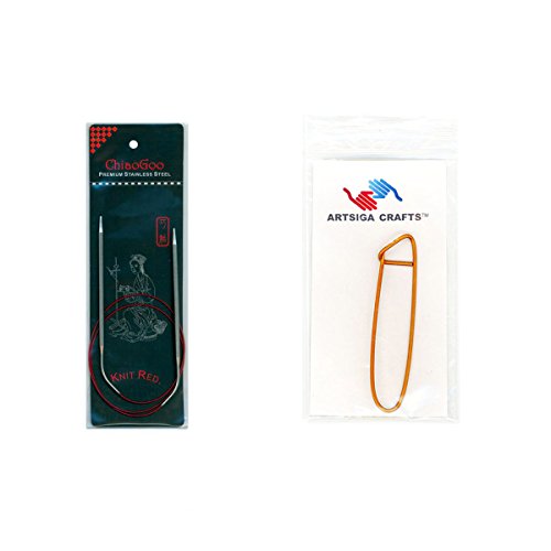 - Bundle includes 1 ChiaoGoo Red Circular 32-inch (81cm) Stainless Steel Knitting Needle; Size US 6 (4mm) with 1 Artsiga Crafts Stitch Holder 6032-6