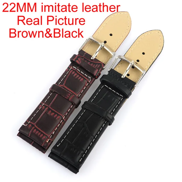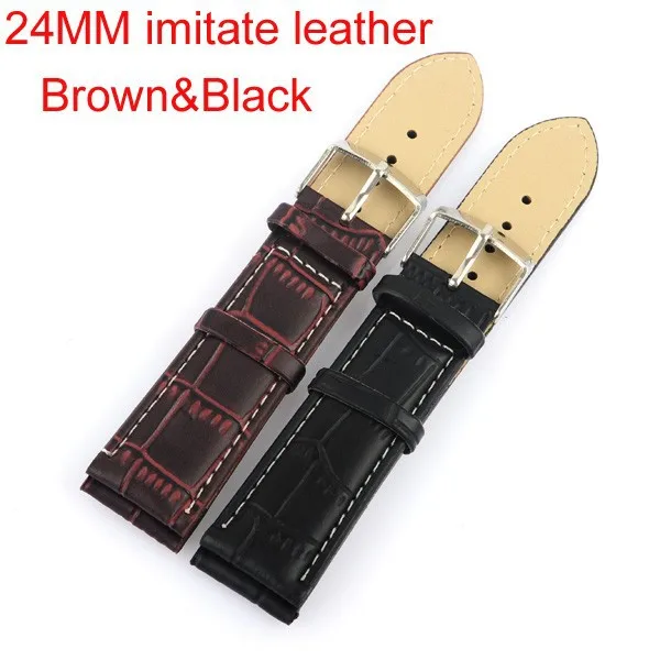 [해외] 도매 높은 품질 50 개/몫 22 미리메터 24 미리메터 모조 가죽 손목 방수 스트랩 스포츠 시계 밴드 블랙 & 브라운