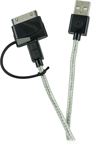 -. Title : GE 2-in-1 USB Micro Cable with 30 Pin Adapter, 1-Feet - Retail Packaging - Black