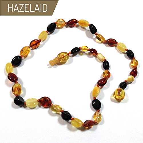 -. Title : Hazelaid (TM) 12" Pop-Clasp Baltic Amber Multicolored Bean Necklace