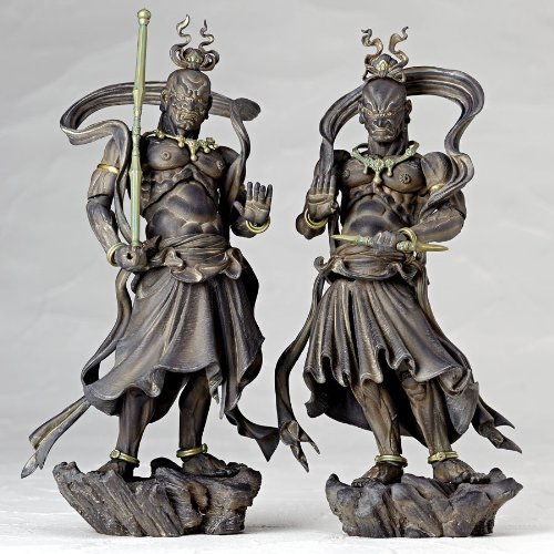 造形総指揮:竹谷隆之、山口隆原型制作:鬼木祐二・見るものを無言で威圧する吽形×感情を露わにし敵を圧する阿形・筋骨逞しく造形された上半身の肉体に軟質素材を多用しているので、守護神に相応しい豪快で猛々しい戦闘ポーズをとることが可能・名前の由来である武器「金剛杵(こんごうしょ)」が付属。・金剛杵は吽形に短いものを2本、阿形には長いものが2本付いており、2体揃えれば同じ武器を持たせて対峙させることが可能・幾年もの時を経た「木製の仏像」が醸し出す風合いを再現した木調版が発売【リボルテックタケヤ~可動仏像の世界~】竹谷隆之が、企画・デザイン・原型制作・彩色までの総指揮をとり完成させた、オリジナルワールド。それは、造形を志すものがいつかは手がけたいと願う、奥の深い彫像の世界―――仏像。彫像の頂点ともいえる高名な作品がひしめく仏像の世界に、アクションフィギュアという手法で挑んだ渾身の試み。長い歴史の中で培われた伝統表現に、独自のタケヤ表現を加えて新境地に昇華した、前代未聞の可動仏像シリーズです。Feature