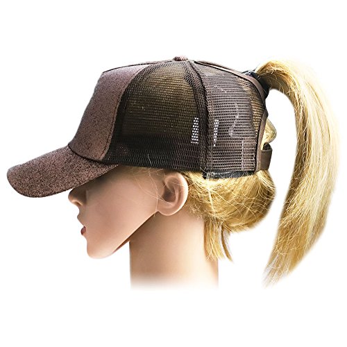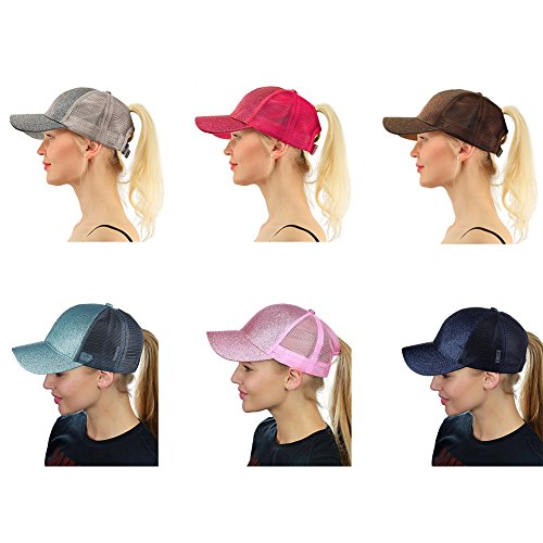 -. Title : Mwfus Women Adjustable Shiny Breathable Trucker Mesh High Bun Ponytail Baseball Cap Net Sun Visor Hat
