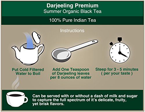 Feature : 2016 HARVEST WITH ENRICHED AROMA: The 2016 Second flush Darjeeling black tea- A loose leaf Indian black tea that offers a hint of Muscatel an aromatic nose and a slight sparkle of tips / TOP NOTCH QUALITY: Our loose leaf organic black teas are produced upon the highest quality and safety standards. Therefore, it's meant to exceed your highest expectations! Amber liquoring cuppa offers suggestions of dark chocolate, vanilla and hints of a sweet floral bouquet / SAFE, ORGANIC AND POWERFUL HEALTH BENEFITS: Our Second Flush Tea is Organic which guarantees that it's safe to drink. The Tea Induces CALMNESS, Rich in ANTIOXIDANTS AND MINERALS and Tastes Amazing. We are backing our claims with a 30 days MONEYBACK GUARANTEE. We want you to be satisfied with our products / PREPARE YOUR OWN ORGANIC KOMBUCHA DRINK: Our loose leaf organic black tea makes a fine Kombucha drink or Sun Tea at home. Gift packaging optional at check-out / SATISFACTION GUARANTEED - We are so confident you're going to love your Darjeeling loose Leaf organic black tea we're offering it with a 100% refund guarantee. If by any chance, you have any problems with your black tea, let us know and we would refund every penny of your purchase plus ship you another brand new pack free of charge