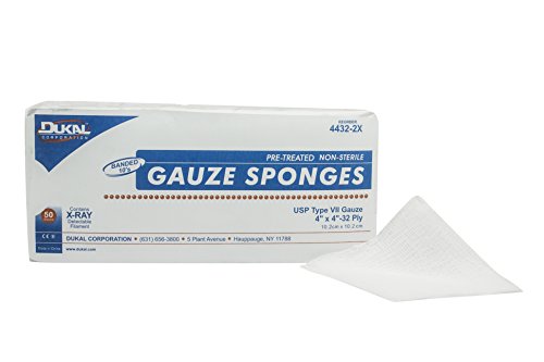 Dukal 4432-2X Gauze Sponge, Type VII, Non-Sterile, X-Ray Detect, 32-Ply Premium, 4" x 4" (Pack ...