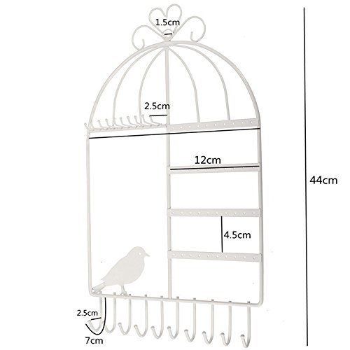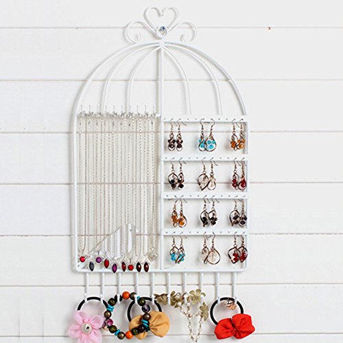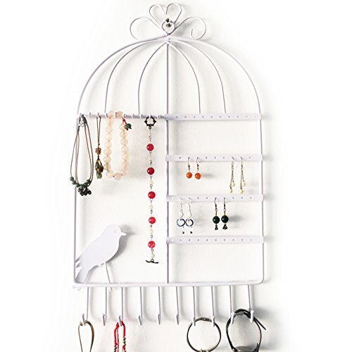 VANCORE Hanging Metal Jewelry Organizer Earring Holder Necklace Display Stand Rack White