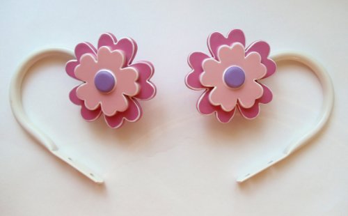SET of 2 Curtain Flower Holdbacks Tiebacks - Pink Purple White - For Girls, Teens, Babys, Adults Bedroom Decor