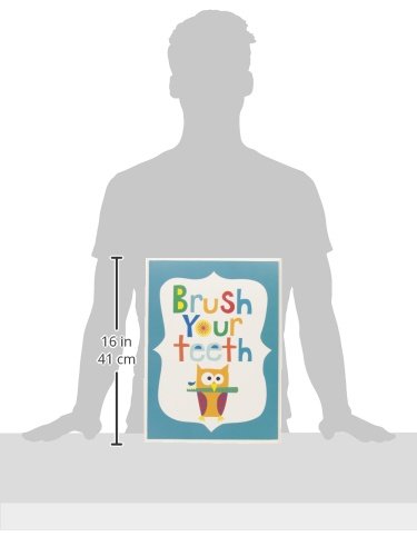 The Kids Room by Stupell Brush Your Teeth With Owl On Blue Background Rectangle Wall Plaque, 11 x 0.5 x 15, Proudly Made in USA