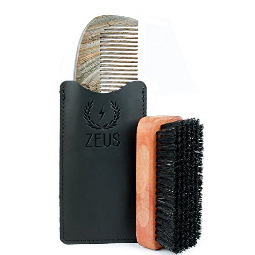 - BEARD CARE SET: Includes Zeus Organic Sandalwood Beard Comb with Leather Sheath + Zeus Pear Wood 100% Boar Bristle Beard Brush.
