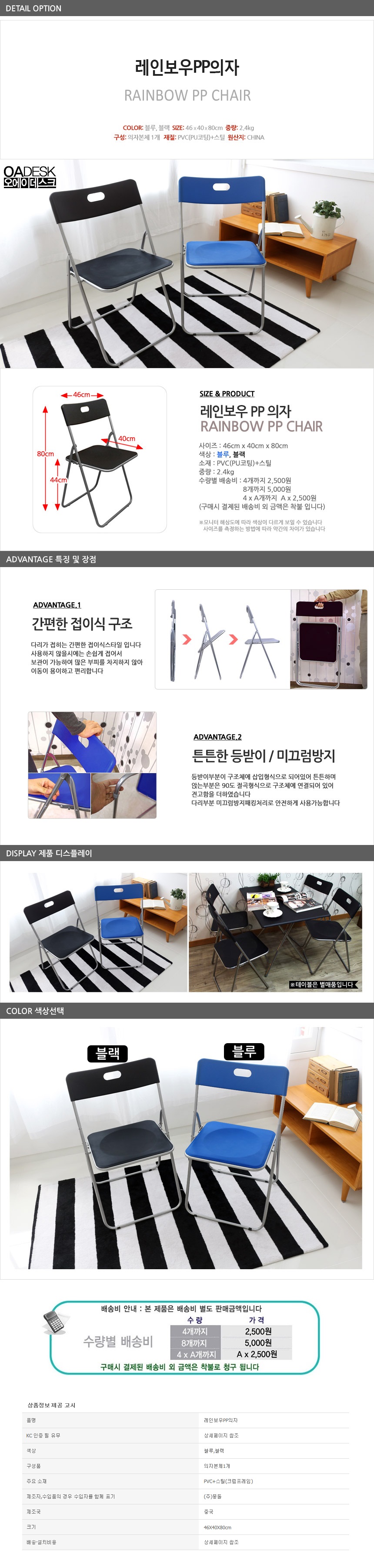 - 품명 및 모델명레인보우 PP의자