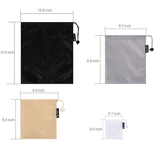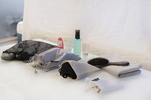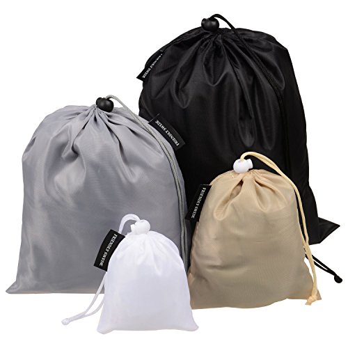 The Friendly Swede Packing bags THE CLUTTER IN YOUR BAG IS LONG GONE! Have you ever gone through all of your luggage to find that bracelet you were certain you brought, just to end up having a complete mess in your bag? So have we! Those days are over now. With The Friendly Swede's Drawstring bags you can organize your packing without filling up your bag with half filled boxes. Our bags are soft and lightweight you can easily adjust them once you fill them with whatever you decide. The different colors also make it easy to differentiate the bags from each other so that you can easily find exactly what you are looking for. AND SO IS THE CLUTTER IN YOUR HOME The bags are also a great way to organize things around your home. We all have items in our home that we don't have a place for, like pens, sewing accessories, toys and much, much more. Now you can put them in the bags instead of having them laying around. The drawstring makes it possible to hang the bag in an inconspicuous place and the neutral colors will blend in all homes. CONTENTS 1 x Black drawstring bag (27x32cm) 1 x Grey drawstring bag (21x25cm) 1 x Beige drawstring bag (15x17,5) 1 x White drawstring bag (10,5x12,5cm)