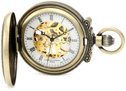 -. Title : Charles-Hubert, Paris 3865-G Classic Collection Gold-Plated Antiqued Finish Hunter Case Mechanical Pocket Watch