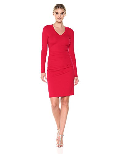 Nicole Miller Women's Ponte Asymm Ruffle Dress, Lipstick Red (Lre), L