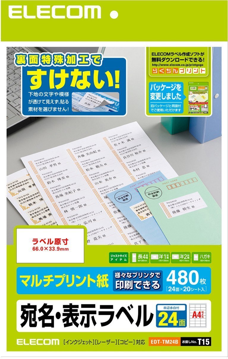 ELECOM crispy label (anywhere) multi-print sheet 480 pieces containing (20 - To × 24 surface) EDT-TM24B