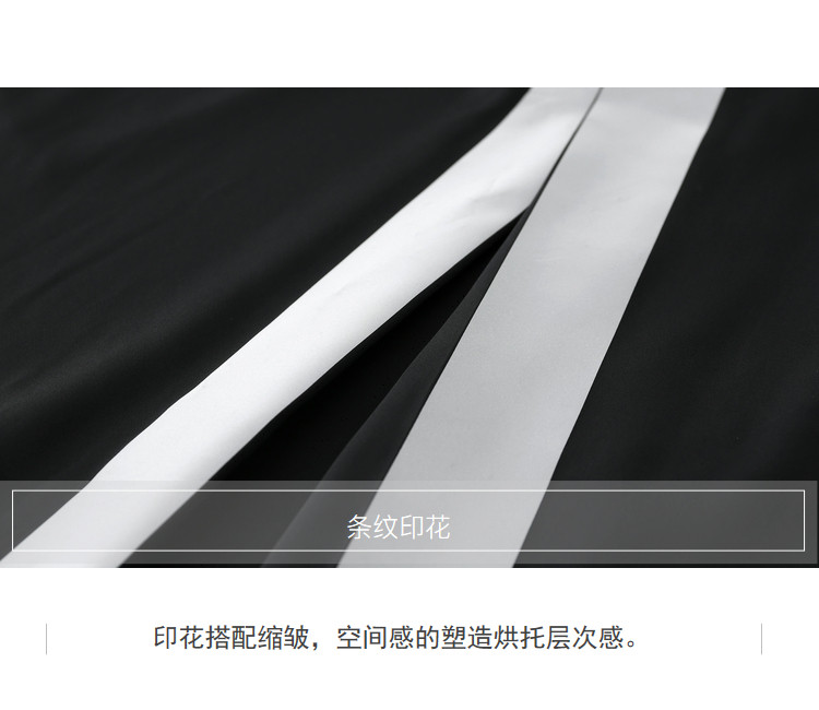 条纹印花搭配缩皱,散开碎褶,