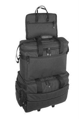 -. Feature : This combination includes the TB19 wheeled carrier, the Project / Sewing Machine Tote and the Notions Bag for fantastic value! / The TB19 Wheeled Carrier holds most small to mid-size machines / Constructed of 600d Poly with a red ball-bearing wheel set, multiple interior pockets for additional storage, and fashion forward color options make this product an absolute must-have / The Project / Sewing Machine Tote is perfect for carrying small, lightweight machines or your current projects! / It features a zippered accessory pocket on the front, shoulder straps and grab