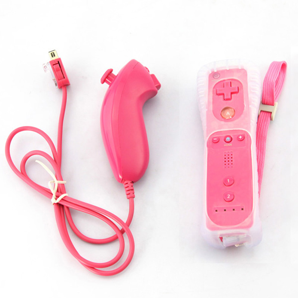 montessori educational toy 5 COLORS?Wireless Remote Controller with Built in Motion Plus + Nunchuck Controller for Nintendo Wii with Silicone Soft Skin Case