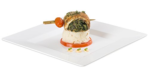 Squarete 9.5'' inch White Dinner Square Plates Hard Plastic Elegant Disposable 10 Square Dinner Plates Per Package