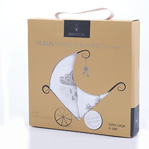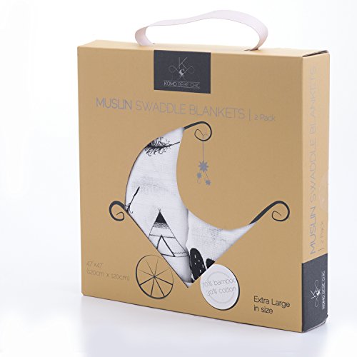 -. Title : Bamboo Muslin Swaddle Blankets (2-Pack) - By Komo Bébé Chic - X Large, BREATHABLE, Super SOFT, Hypoallergenic Receiving Blankets - Perfect UNISEX Baby Shower Gift & Nursery Set