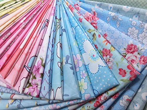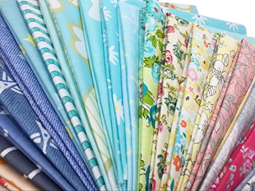 levylisa Floral Dot Stripe Cotton Flower Quilting Fabric Quarter Bundle patchwork Quilting Fabric Sets Sewing Fabric Patchwork Flower Dots DIY quilting Handmade Craft 8” x 8”