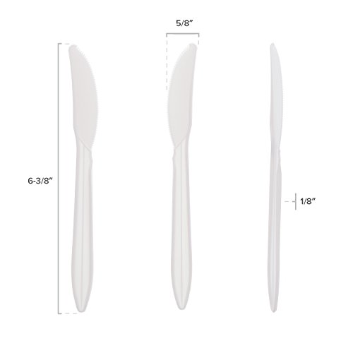 Medium weight and affordable These knives are budget friendly and are considered to be medium weight. They are a more affordable option than the heavyweight forks. They are made from polypropylene. Convenient! Disposable cutlery offers convenience and time savings. There is no need to wash reusable metal forks, knives, and spoons. Clean up is easy and efficient! Perfect for restaurants and parties! This item is perfect for fast food restaurants, or places that offer take-out or delivery orders. Customers will appreciate having cutlery included in their take-out and delivery items, and staff will appreciate the convenience plastic cutlery offers to dining-in orders. A great addition to any party! 0 |