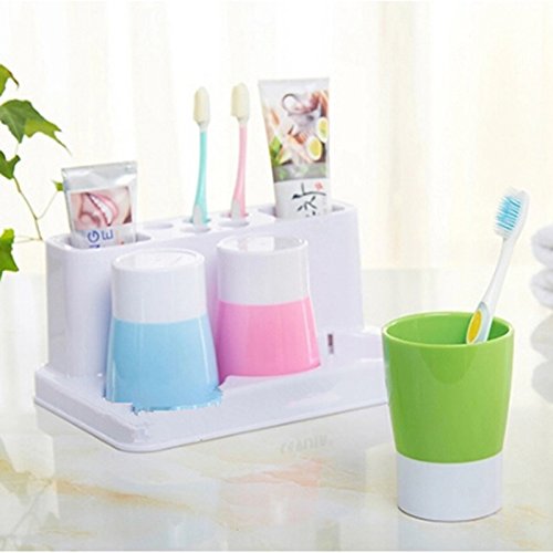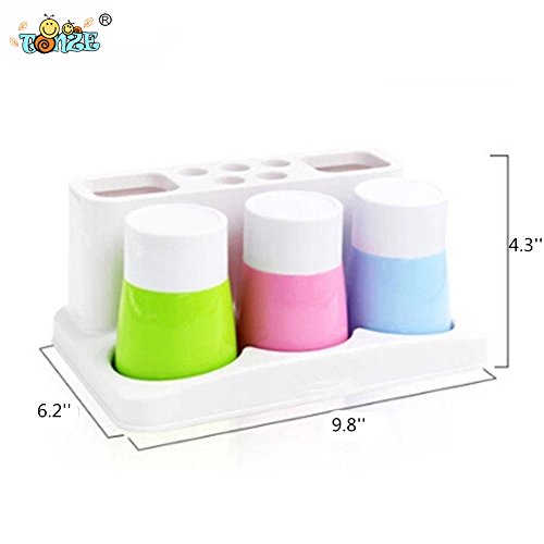 Tonze Plastic Bathroom Toothbrush Tooth Paste Stand Holder Storage Rack Box Set