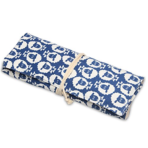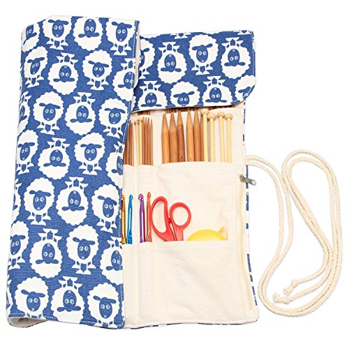 Teamoy Knitting Needles Holder Case(up to 14 Inches), Cotton Canvas Rolling Organizer for Straight and Circular Knitting Needles, Crochet Hooks and Accessories, Sheep --NO ACCESSORIES INCLUDED